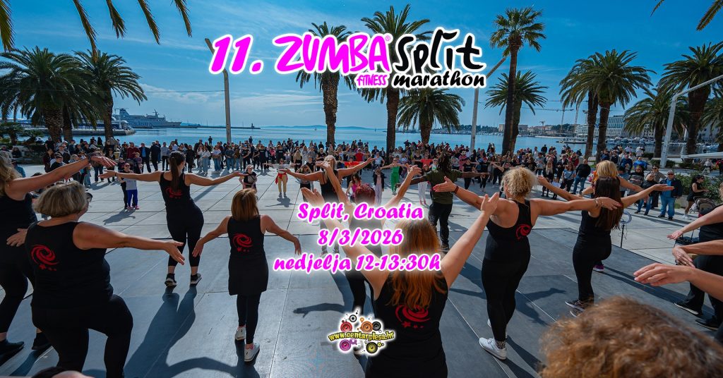 Povodom Međunarodnog dana žena, u nedjelju 8. ožujka 2026. s početkom u 12 sati, splitska Riva ponovno će postati mjesto plesa, rekreacije i pozitivne energije. Održava se 11. Zumba Split Marathon 2026, tradicionalni javni fitness događaj u organizaciji Centra plesa.